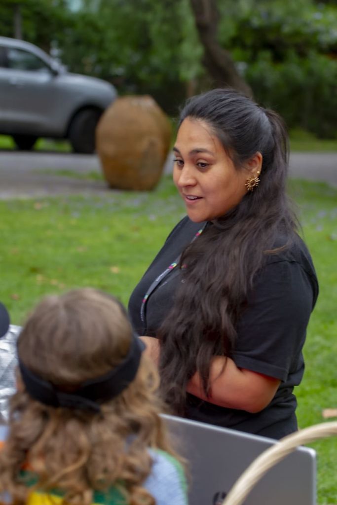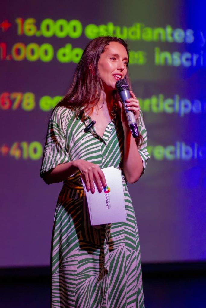 Uno de los momentos más significativos fue el testimonio de Pamela Ampuero, embajadora Colorearte en Ancud, Chiloé, quien destacó el trabajo multisectorial que se desarrolló en la comuna gracias al proyecto: especialistas en humedales, conservación, flora y fauna nativa, además de artistas, se involucraron de manera gratuita y generosa para capacitar a los docentes participantes.